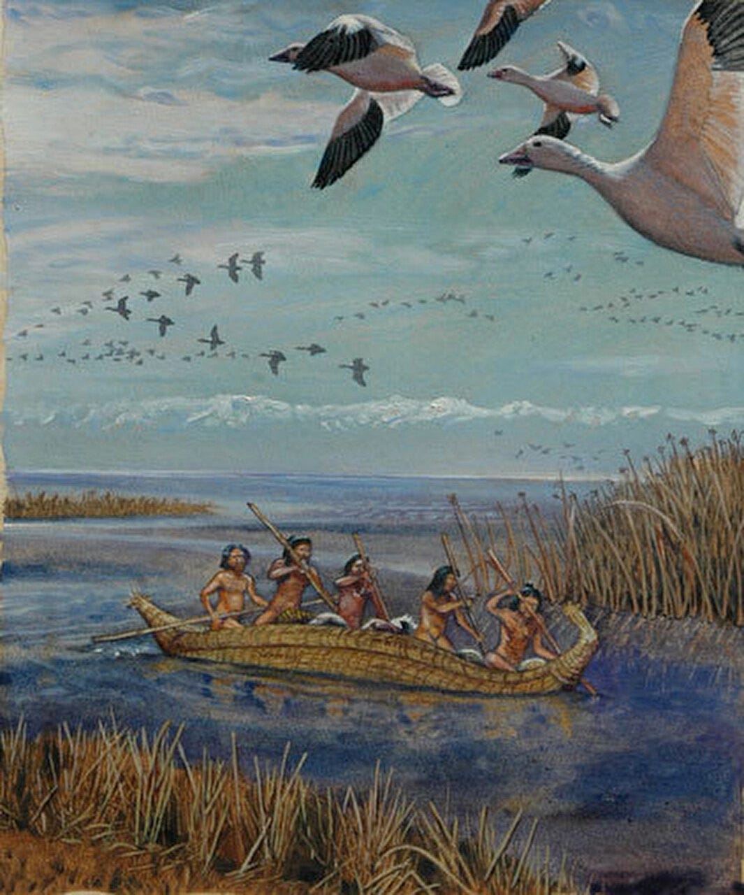 Indigenous peoples lived all around the lake, by many accounts, the largest population centers north of Mexico. The landscape was both beautiful and productive: tule marshes, abundant native fishes, immense flocks of waterfowl, turtles, tule elk, and bears.