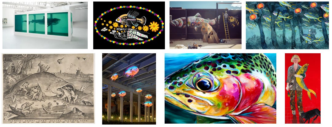For years, I taught a large ichthyology (biology and evolution of fishes) class. The class was >200 students, and the first lecture was always a bit gauche. The audience was always so cold, mostly because they don’t know you at all. I would then mention that before launching into each lecture, I would show them some fish art, usually pertaining to the lecture topic of the day. Almost immediately, the hard faces would soften and the mood would lift. There was also an extra credit project where students could create their own fish art and/or haiku, if they wanted. Admittedly, these activities were a bit of a gimmick, but an effective one I learned from a great mentor, Peter B. Moyle. The art captured their attention, and suckered them (pardon the pun) into spending more time thinking about fishes. As time wore on though, class alumni often told me how the fish art (Fig. 1) was something they genuinely enjoyed, and that few other science professors ever talked about art. Some of the students were truly exceptional artists, and then I watched as they launched impressive careers in STEM. Creative students often turned out to be great at science too. I’m not the first to make these observations either. EO Wilson, in a controversial op ed, discussed how we often steer creatives away from STEM by sending the message that you must be good at math to also be good at science.